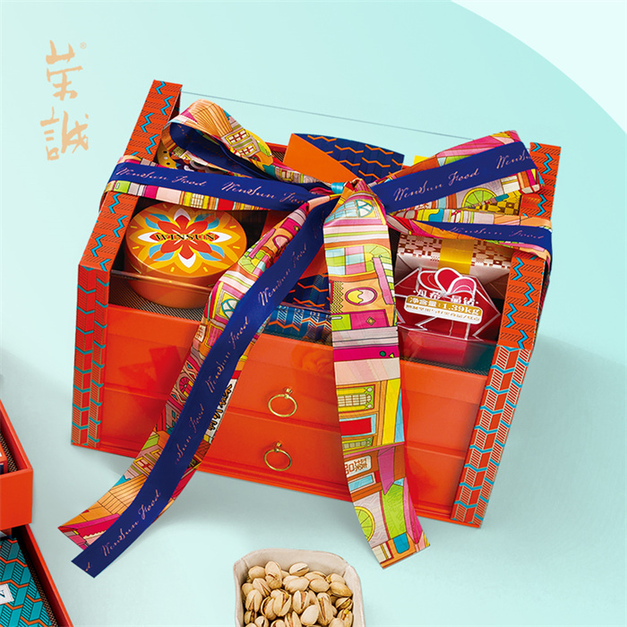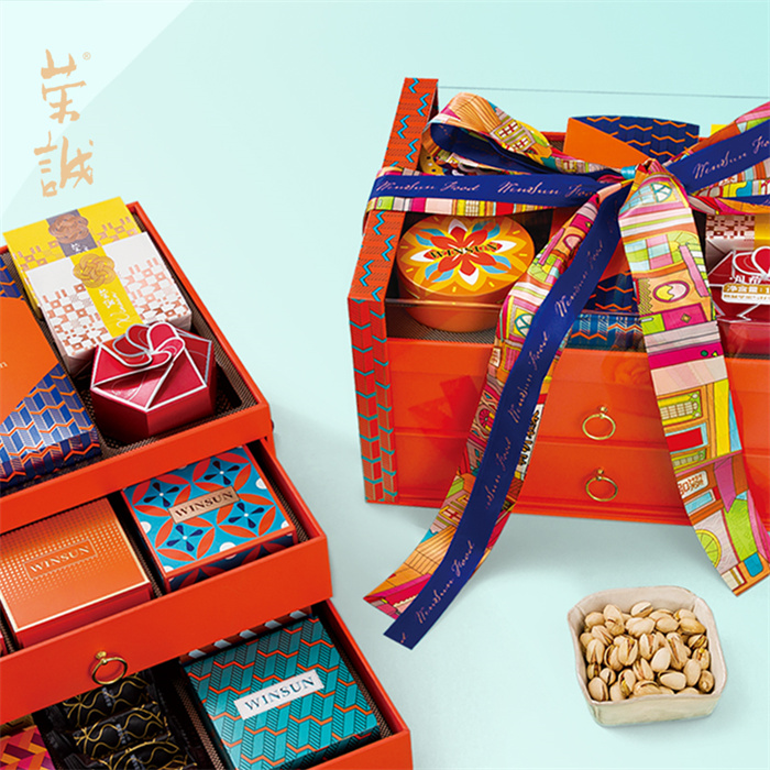 【編 碼】 YBZ2123(22) 【條形碼】 6925755560507 【尺 寸】 35x26.5x20cm 【凈含量】 1390g 【規(guī) 格】 1390gx2盒/箱 【內(nèi)容物】 100g開心果(鐵罐裝)x1,100g綜合果仁(鐵罐裝)x1,100g蛋黃純蓮蓉餅x2,30g香妃鳳梨酥x2,50g乳酪芝士餅x1,100g五仁鮑魚餅x2,60g燕窩雪酪糕點x2,80g桃山糕點(藍莓芝士)x2,60g流沙蛋黃酥(斑斕椰絲)x2,50g御瓷酥糕點(巴旦木腰果)x2,30g黑金鳳梨酥x6