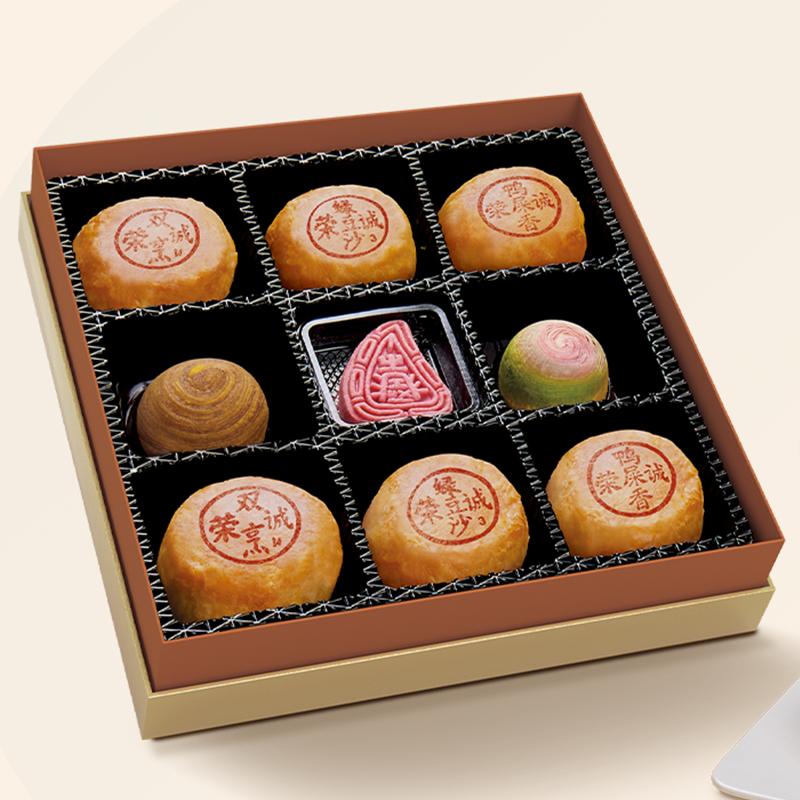 【編 碼】 YBZ2318 【條形碼】 6925755561856 【尺 寸】 30x30x7.5cm 【凈含量】 680g 【規(guī) 格】 680gx8盒/箱 【內(nèi)容物】 80g潮式雙烹月餅x2+80g潮式綠豆沙月餅x2+80g潮式單叢鴨屎香茶月餅x2+70g潮式生椰拿鐵彩虹酥皮月餅x1+70g潮式粒粒紅豆芝士彩虹酥皮月餅x1+30g潮汕殼桃形山楂蔓越莓月餅x2