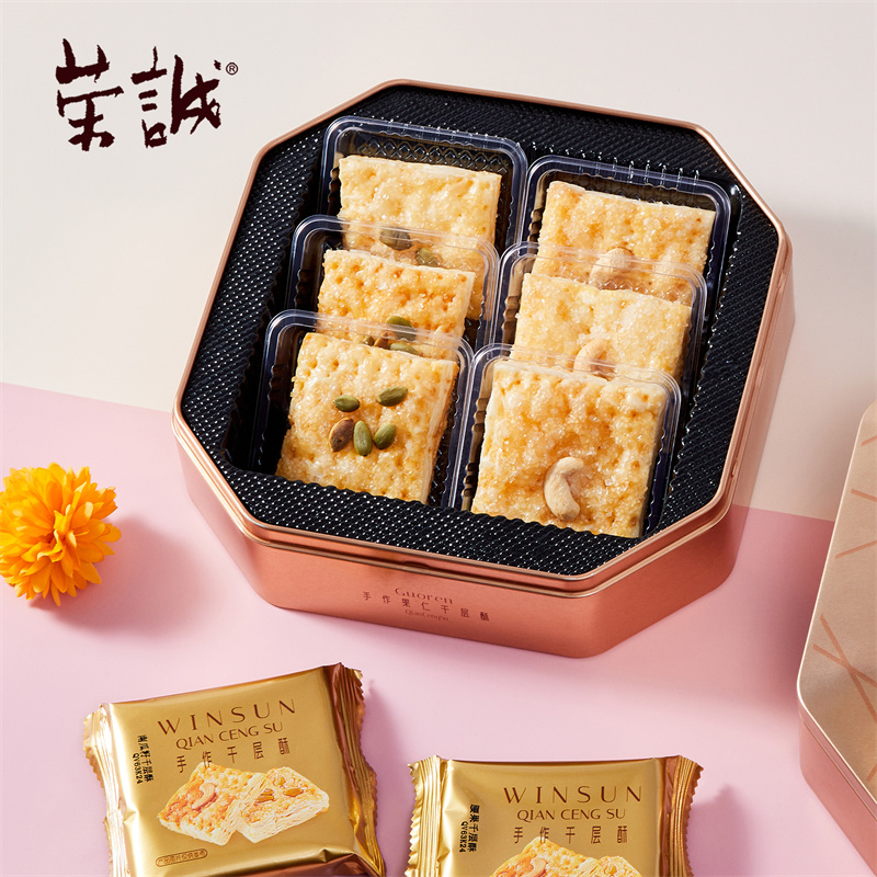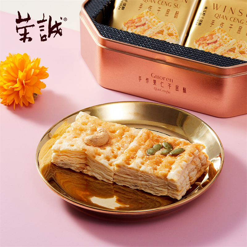 【編 碼】 CGT2408 【條形碼】 6925755536182 【尺 寸】 19.9x19.9x6.1cm 【凈含量】 120g 【規(guī) 格】 120gx12盒/箱 【內(nèi)容物】 20g腰果千層酥x3,20g南瓜籽千層酥x3