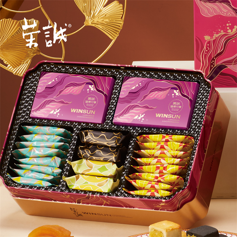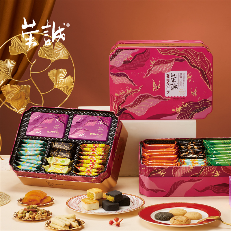 【編 碼】 CGT2307 【條形碼】 6925755534485 【尺 寸】 29.6x21x16.2cm 【凈含量】 788g 【規(guī) 格】 788gx6盒/箱 【內(nèi)容物】  100g綜合果仁x1,70g黃桃干x1,8g原味奶油曲奇x8,10g椰蓉奶酥x8,30g香妃鳳梨酥x2,30g黑金鳳梨酥x2,10g香焙黑芝麻酥x8,10g香焙蔓越莓酥x7,13.5g澳式金泊雞蛋卷(芝麻原味)x8,12g蔥香卡拉棒x8