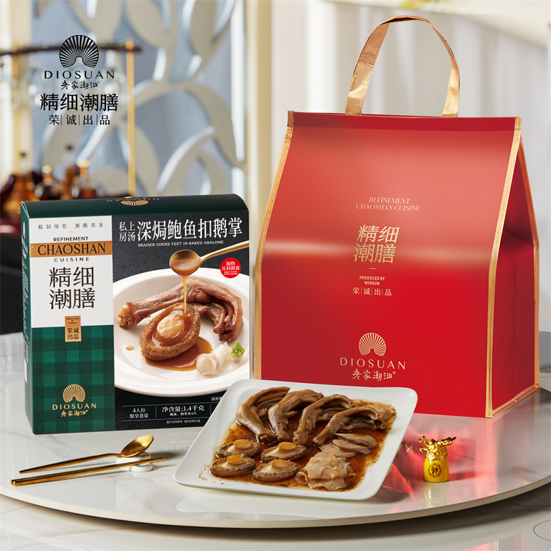 【編 碼】 JXCS2402(Q) 【條形碼】 6925755536014 【尺 寸】 33.5x14x33.5cm 【凈含量】 1400g 【規(guī) 格】 【內(nèi)容物】 1.4kg私房上湯深焗鮑魚扣鵝掌x1(內(nèi)含鮑魚、鵝掌各4只)