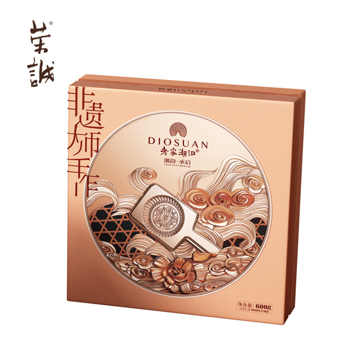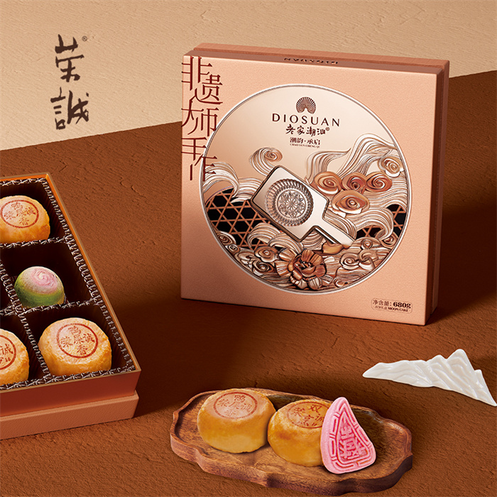 【編 碼】 YBZ2418 【條形碼】 6925755562693 【尺 寸】 30x30x7.5cm 【凈含量】 680g 【規(guī) 格】 680gx8盒/箱 【內(nèi)容物】 80g潮式雙烹月餅x1,80g潮式綠豆沙月餅x1,80g潮式鴨屎香茶月餅x2,80g潮式烏豆沙蛋黃流沙月餅x1 ,80g潮式烏豆沙月餅x1,70g潮式豆沙生椰拿鐵酥皮月餅x1,70g潮式粒粒紅豆沙芝士酥皮月餅x1,30g潮汕豆蓉山楂蔓越莓月餅x2