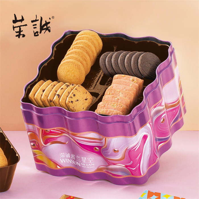 【編 碼】 CGT2501 【條形碼】 6925755534454 【尺 寸】 21x21x14.3cm 【凈含量】 448g 【規(guī) 格】 448gx12盒/箱 【內(nèi)容物】 112g原味奶油曲奇,112g巧克力味曲奇,112g蔓越莓曲奇,112g果仁曲奇