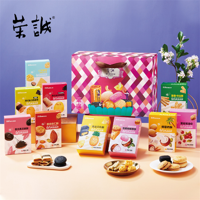 【編 碼】 CGZ2512 【條形碼】 6925755536854 【尺 寸】 40x13x29cm 【凈含量】 908g 【規(guī) 格】 908gx4盒/箱 【內(nèi)容物】  80g香焙杏仁酥x1,80g香焙黑芝麻酥x1,80g蔓越莓曲奇x1,96g小花曲奇(海鹽芝士味)x1,120g黑金鳳梨酥x1,140g絲絲濃香雪媚娘椰蓉餅x1,80g澳式金泊雞蛋卷(芝麻原味)x1,80g澳式金泊雞蛋卷(海苔)x1,80g椰蓉奶酥x1,72g蔥香卡拉棒x1